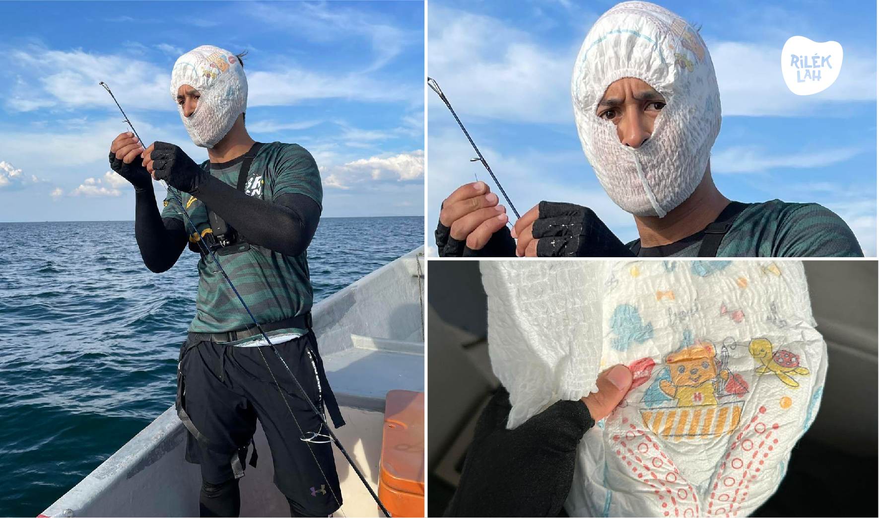[VIDEO] "Bila Minta Bini Pack Barang Mancing" - Suami Redha Pampers Anak Jadi Topi Tengah Laut!