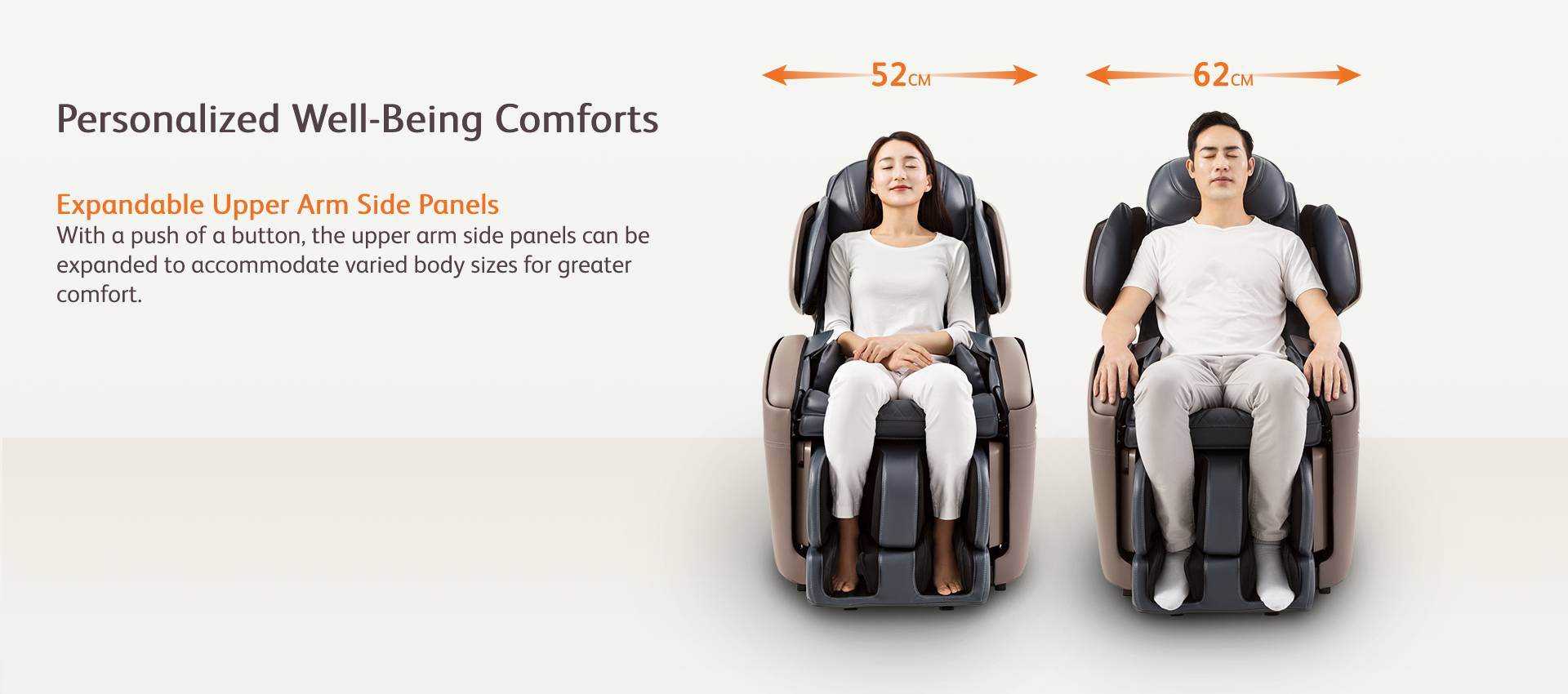 i - Panel sisi atas lengan yang boleh dilebarkan hingga 62 cm mengikut pelbagai jenis ukuran badan untuk keselesaan pengguna yang bersaiz besar.