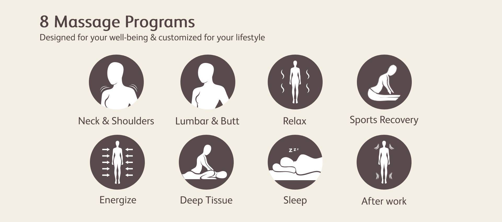 Bukan hanya 1 atau 2, tetapi kerusi urut OSIM uNano Series ini mempunyai sehingga 8 program atau mod urutan automatik yang disediakan untuk anda sesuaikan mengikut gaya hidup sendiri.
