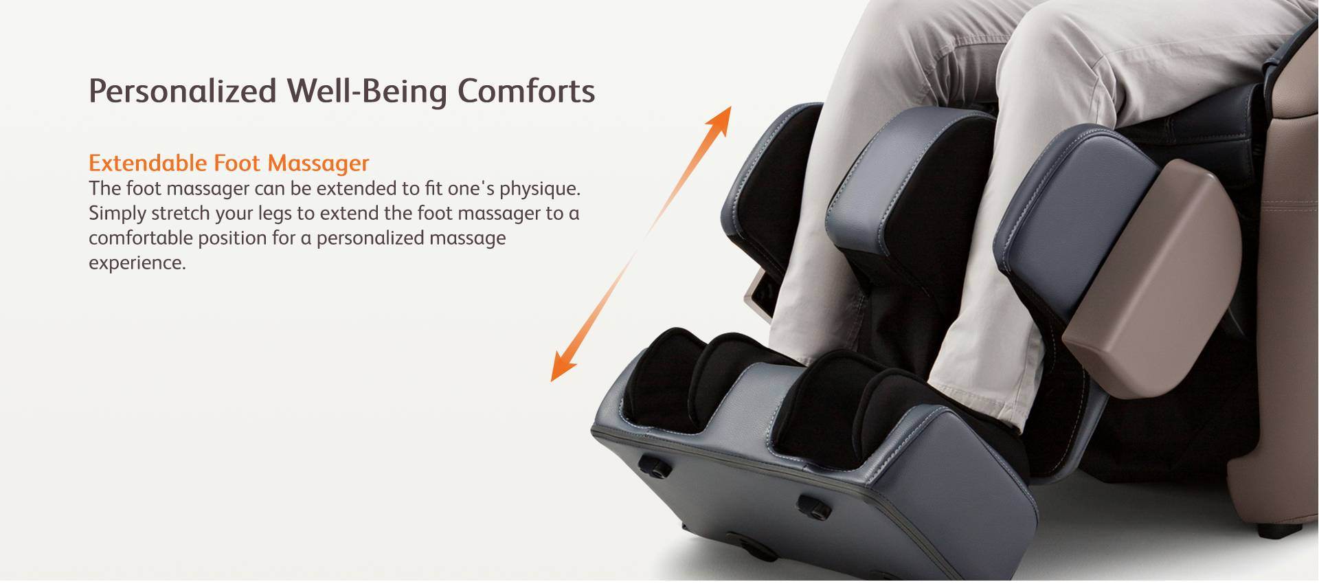 Kerusi urut OSIM uNano Series ini juga mempunyai tempat letak kaki yang boleh ditarik semula dan dilipat bagi memberi ruang yang lebih selesa sekiranya anda tidak menggunakan kerusi tersebut atau hanya ingin digunakan sebagai sofa.