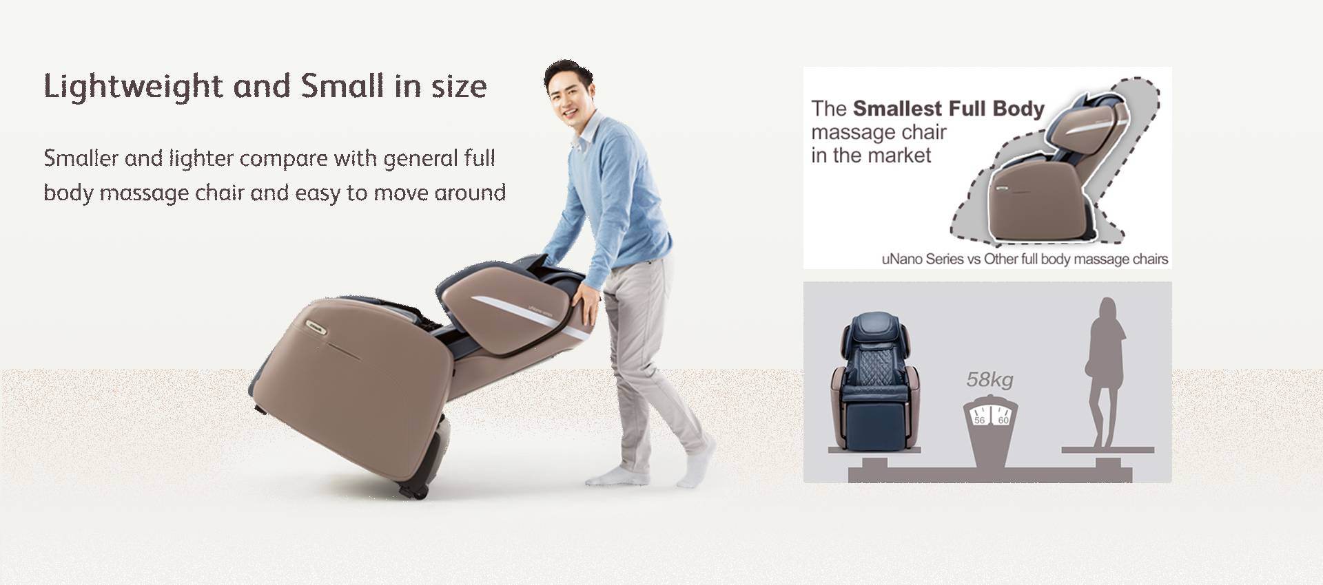 Tetapi dengan kerusi urut OSIM uNano Series ini, percaya atau tidak ianya hanya seberat 58 kilogram dan bersaiz kecil serta lebih ringan dan mudah untuk digerakkan atau dialihkan ke tempat lain.