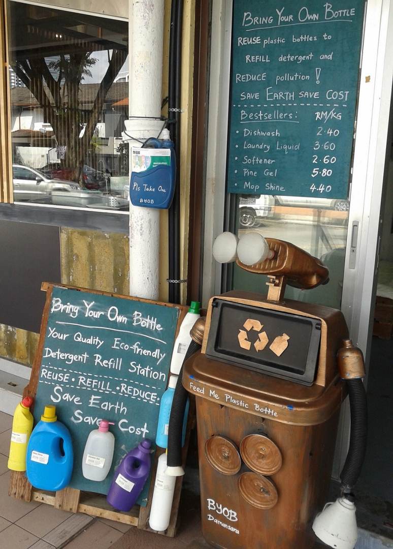 Korang boleh bawa botol ataupun bekas korang sendiri untuk membeli-belah dekat BYOB ini, dan dorang terkenal dengan cecair cuci baju yang mesra alam. Setiap kali apa-apa cecair korang habis, bawa sahaja bekas yang sama, dan isi semula. Yang penting, takde sampah!