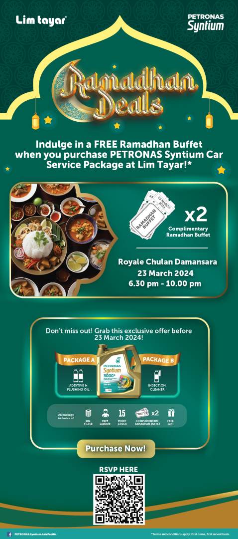 Berita baik untuk anda! Hasil kerjasama sekian lama antara PETRONAS Syntium dan Lim Tayar, mereka menyediakan tawaran istimewa servis kereta sempena bulan Ramadan! Melalui ”Ramadhan Deals” bermula dari 5 hingga 22 Mac 2024.