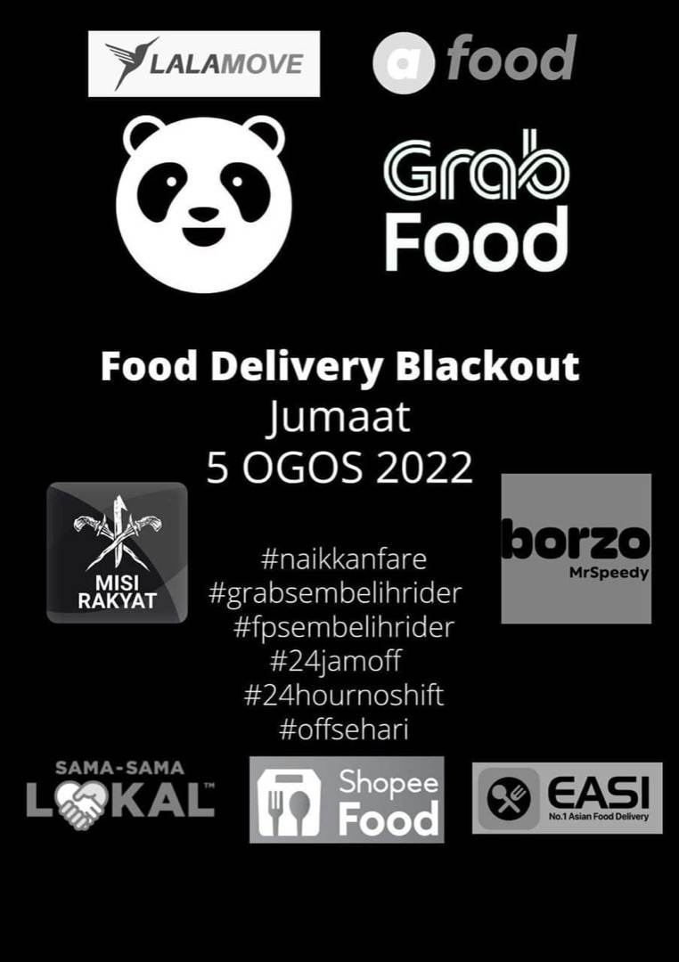 Malah tanda pagar #24jamoff, #24hourofshift dan #offsehari menandakan bahawa rakan penghantar gig itu tidak akan menjalankan operasi mereka untuk tempoh sepanjang hari esok.