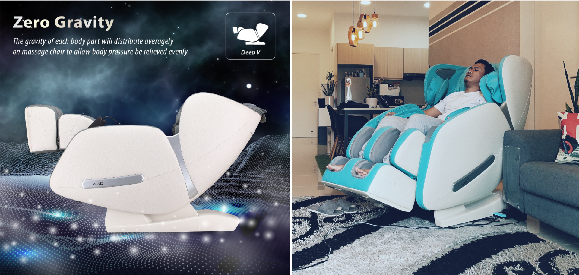 Bila sampai di rumah, dapat berehat sekejap atas kerusi urut ini terus hilang segala masalah seharian. Masa itulah badan korang terasa 3 tahap zero graviti yang kami maksudkan. Rasa diri ini bagaikan terapung di awangan. Fungsi zero graviti ini membolehkan urutan pada badan dengan daya tekanan yang paling minimum.