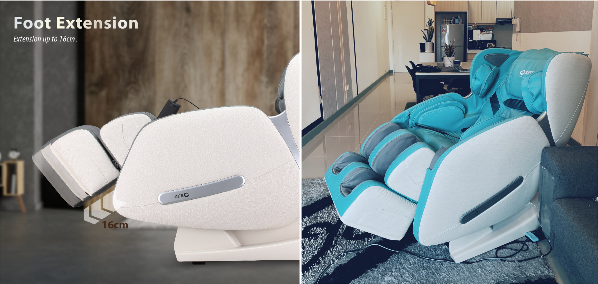Ruangan urutan kaki kerusi urut ini juga mencecah sehingga 16cm okay. Jadi tiada alasan untuk tidak memilih kerusi urut uSmarto.