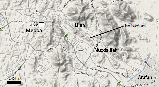 Ketika Abrahah hendak menghancurkan Kaabah, mereka singgah di Wadi Muhassar dan lembah ini menjadi persinggahan terakhir Abrahah dan tenteranya ketika itulah Allah SWT mengutuskan burung Ababil melontarkan batu yang sangat panas kepada mereka.