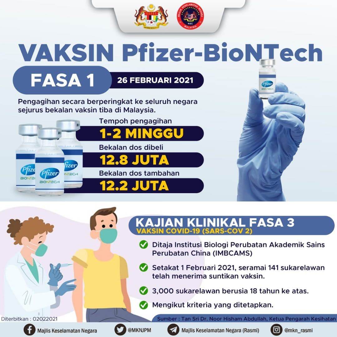 Untuk rekod, vaksin Pfizer juga menjadi vaksin COVID-19 yang pertama mendapat perakuan Pertubuhan Kesihatan Sedunia (WHO) untuk kegunaan kecemasan.