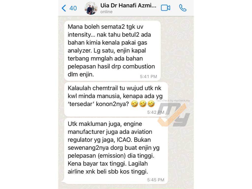 MyCheck juga ada berhubung terus dengan Dr Hanafi Azami untuk mengulas lebih lanjut berkenaan chemtrail ini.
