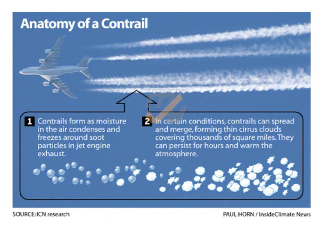 Sepertimana yang kita tahu, enjin kapal terbang panas manakala keadaan di luar kapal terbang pula adalah sejuk, yang menyebabkan berlakunya contrail tersebut.