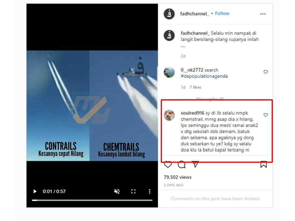 Carian juga menjumpai satu hantaran di instagram fadhchannel_ yang memberikan panduan cara mengenali kesan contrail dan chemtrail.