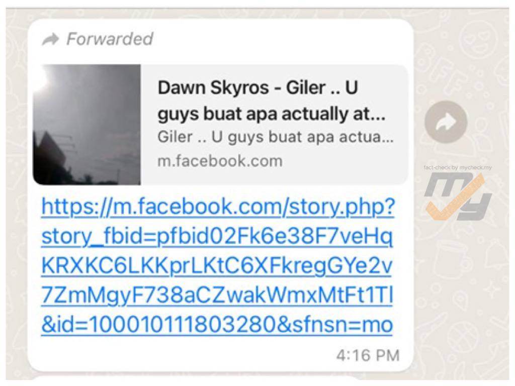 Dakwaan ini disebarkan melalui WhatsApp yang memberikan pautan kepada satu hantaran di Facebook.
