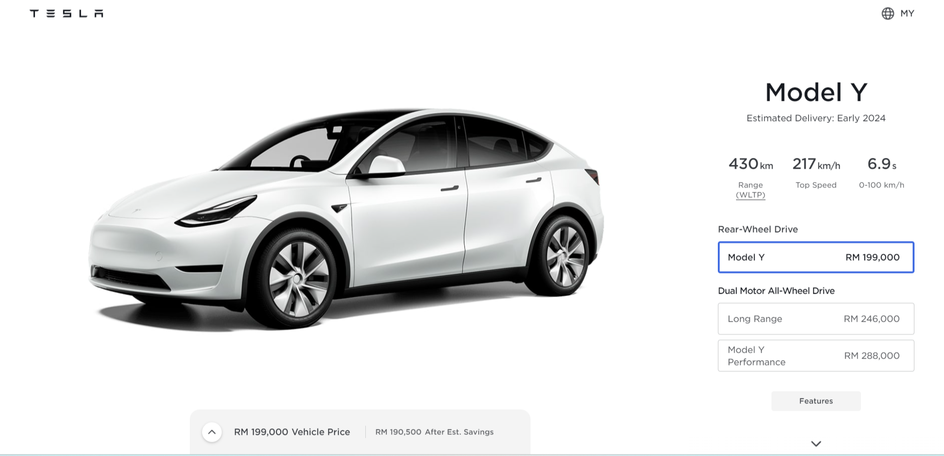 Tesla Model Y sudah boleh ditempah menerusi laman web khas Tesla yang baharu sahaja dibuka dengan yuran tempahan RM1,000.