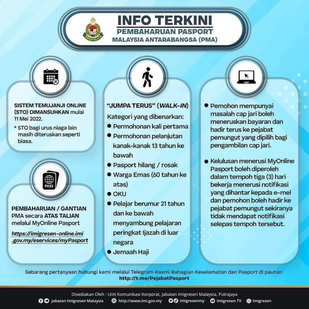 GAYA HIDUPSeperti yang kita sedia maklum sekarang untuk urusan memperbaharui pasport perlu membuat permohonan hanya secara online atau dalam talian menerusi MyOnline Pasport dan tiada lagi kaedah walk-in dibenarkan!