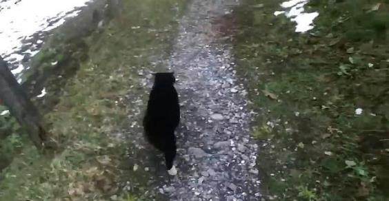 Tiba-tiba muncul seekor kucing datang kepadanya dan memandang tepat ke arahnya. Si comel itu kemudian berbunyi dan mula berjalan pergi. Namun, dia kembali berpaling ke belakang ke arah pelancong tersebut seolah-olah mahu memberitahu sesuatu.
