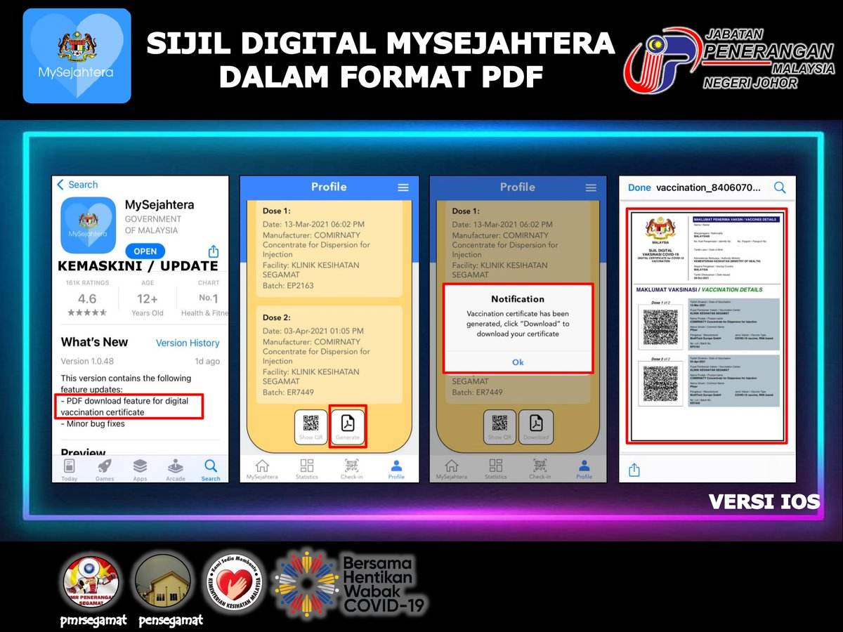 MySejahtera Upgrade Lagi, Kini Sijil Digital Dalam Format PDF!