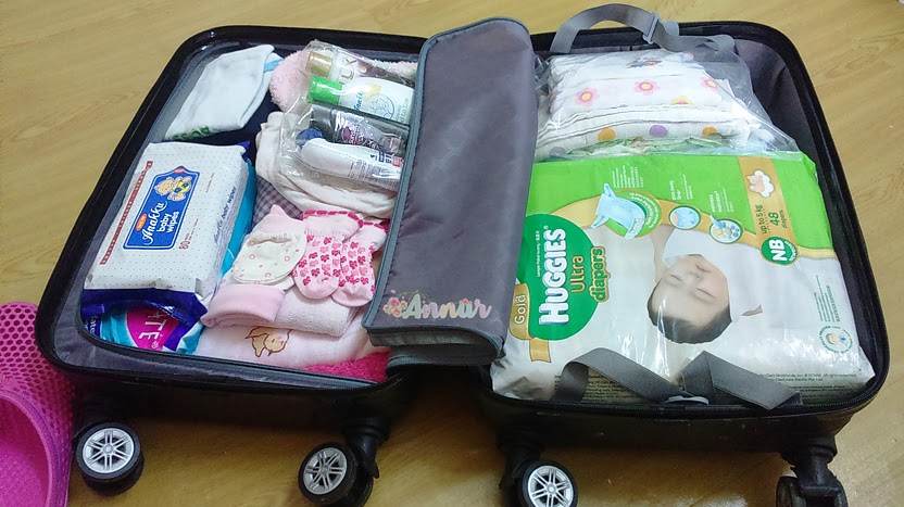 Pastikan semua barangan keperluan bayi dibawa seperti lampin pakai buang, pakaian, selimut, susu, tisu basah dan sebagainya.