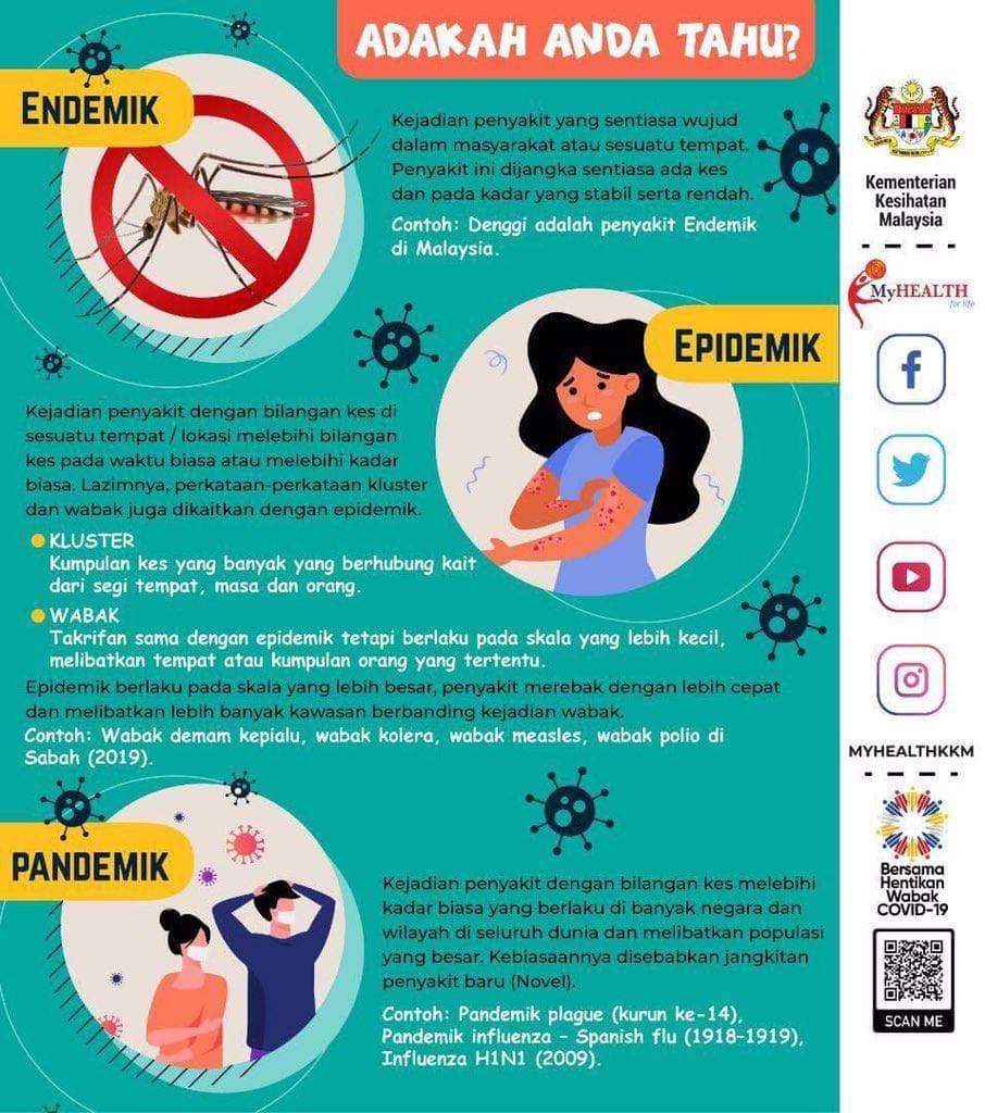 Tapi korang tahu tak apa yang dimaksudkan dengan Endemik? Dan apa beza antara Pandemik, Epidemik serta Endemik?