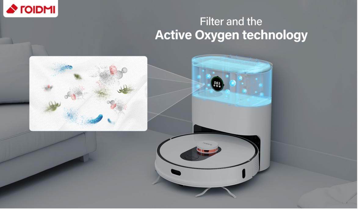 ROIDMI Eve Plus Robot Vacuum dilengkapi dengan teknologi pengaktifan-oksigen yang menghalang sisa buangan daripada berkulat dan berbau sehingga 60 hari! Sisa itu akan tersimpan rapi di dalam ruangan habuk. Ia memberi pengalaman memvakum yang mudah, bersih, dan juga sihat.