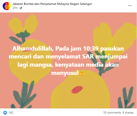 Tahniah buat para petugas SAR, salam takziah buat keluarga mangsa yang terlibat.