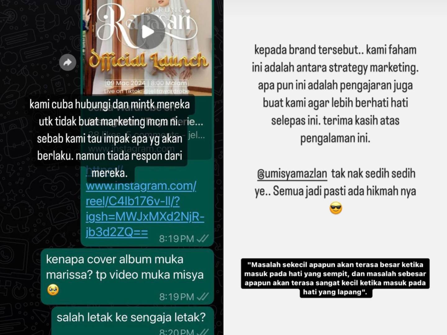 "Jangan Jadikan Ini Sebagai Bahan Marketing Korang" - Kakak Tegur Peniaga Satukan Misya Dengan Suami & Madu Dalam Job Sama