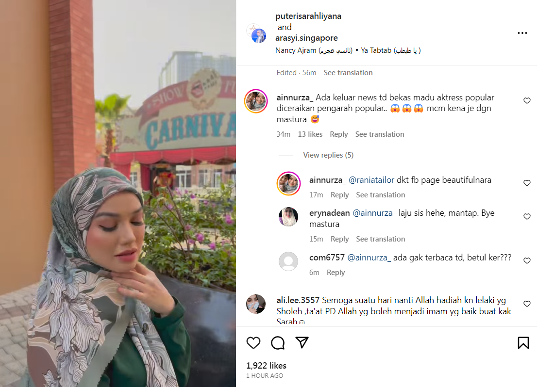 Sementara itu, menjengah ke Instagram bekas isteri pengarah terkenal itu -- ada netizen yang meninggalkan komen dan bertanya kebenaran laporan terbaharu tersebut.