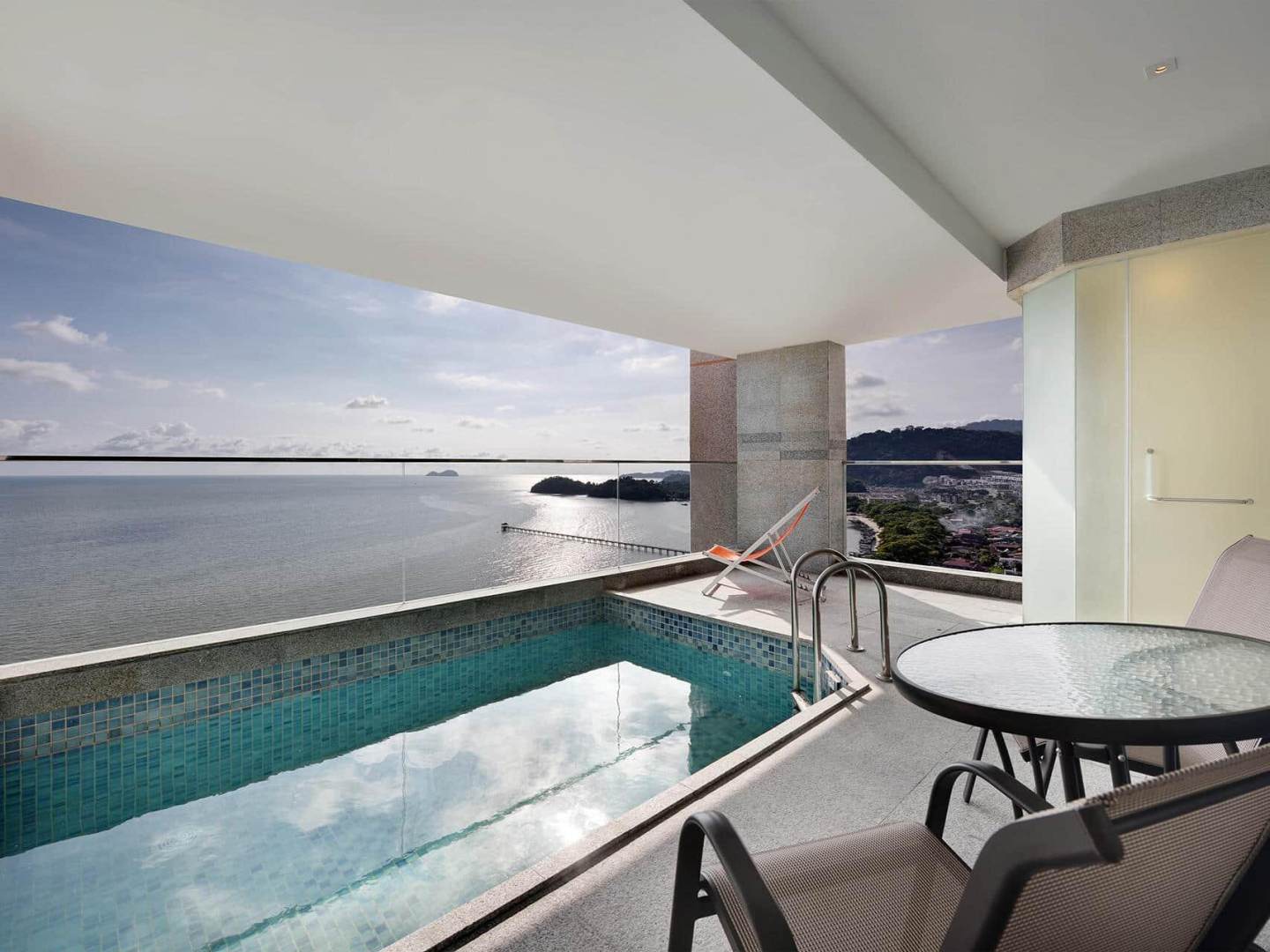 Dihiasi dengan tema yang agak moden dan mewah, permandangan cantik Bayan Lepas, dilengkapi kolam renang peribadi, balkoni yang ditemani dengan permandangan panorama yang menakjubkan dan juga bilik bilik wap di setiap 222 suite. Selain itu, dua katil empuk bersaiz king ditawarkan. Anda lapar tapi malas nak keluar hotel? jangan risau anda juga boleh dine-in di restoran hotel.