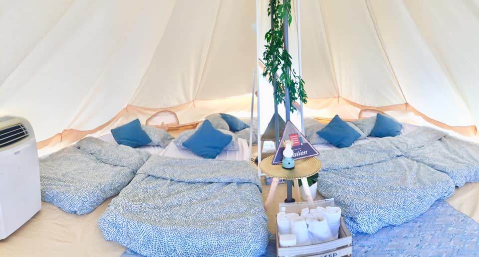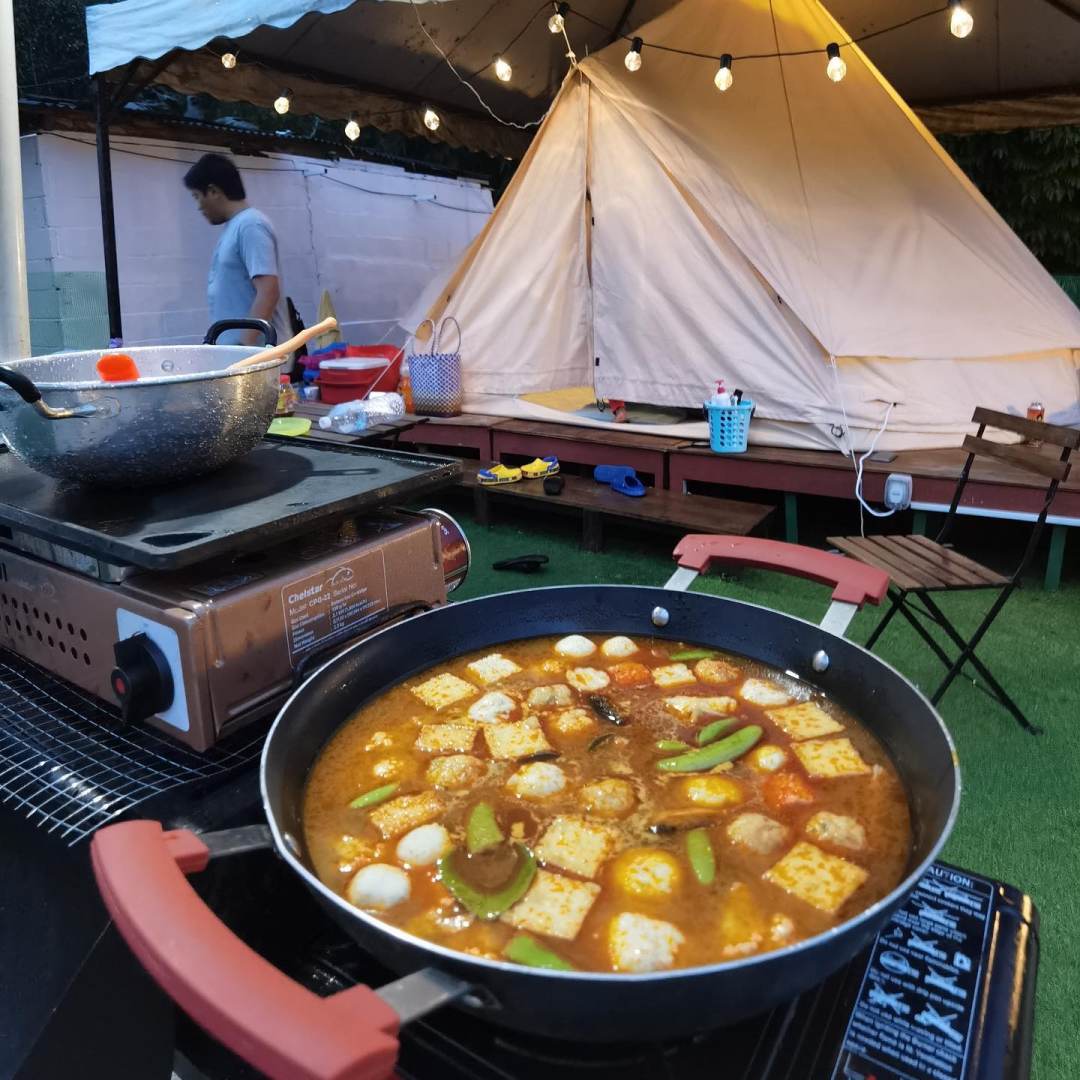 Ianya sangat sesuai untuk 5 orang dan setiap khemah mempunyai 5 tilam, kipas, dan aircond portable bagi memastikan keselesaan sepanjang berada di sini. Peralatan dapur, grill bbq, dan sachet minuman juga turut disediakan tetapi korang boleh bayar RM25 setiap seorang untuk breakfast dan dinner dari pihak resort. Cuma alang-alang dah glamping tu, masak sendiri la. Baru best!