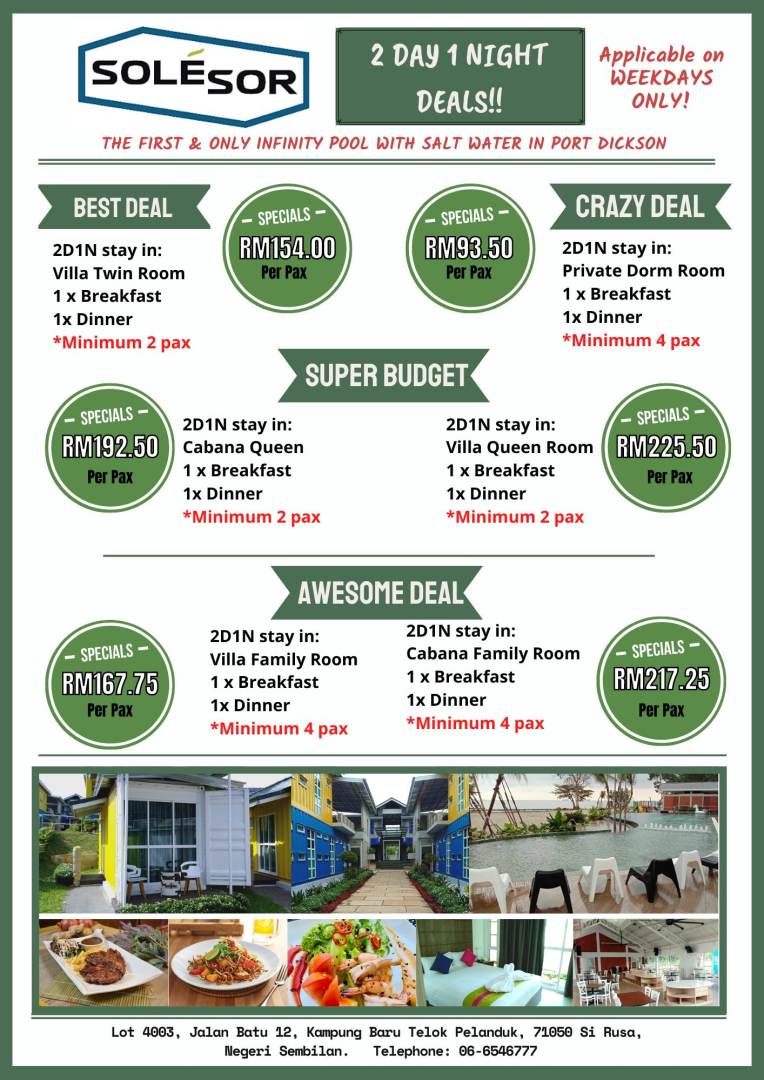 Lokasi penginapan kita kali ini berada di Port Dickson! Solesor Kampong Beach Resort nama diberi! Yang bestnya Solesor Kampong Beach Resort adalah satu kabin resort yang berada di tepi pantai. Unik kan? Demi keselesaan yang maksimum buat para pengunjung, resort ini ada pantai persendirian yang khas untuk korang!