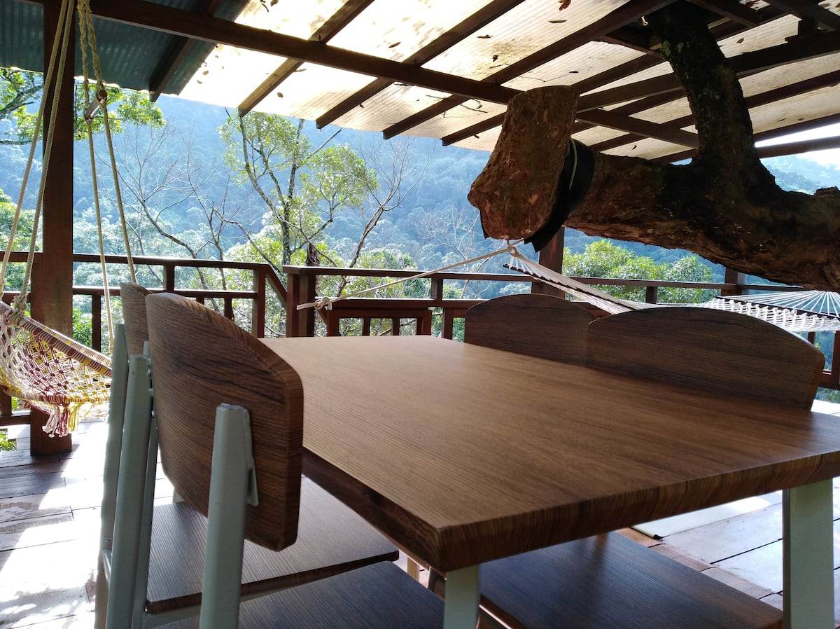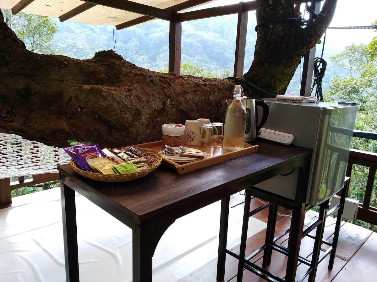 Bukan tu je, ia juga terletak di dalam dusun buah seluas 16 ekar dan 300m dari paras laut. Kepada korang yang risau dengan bau durian tu, tak perlu datang sini pada bulan Jun dan Julai. Bulan lain memang tak ada bau tau sebab bukan musim dia. Di dalam ni juga tiada aircond so korang boleh rasai sendiri pengalaman asli duduk di rumah pokok, tapi masih sejuk pada waktu malam.