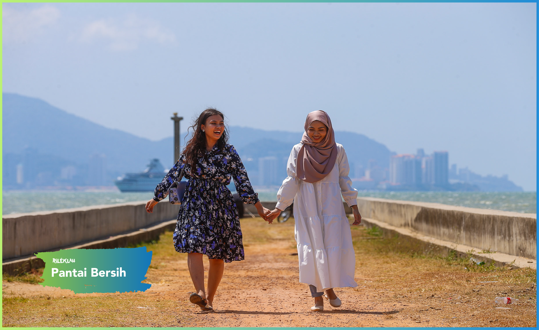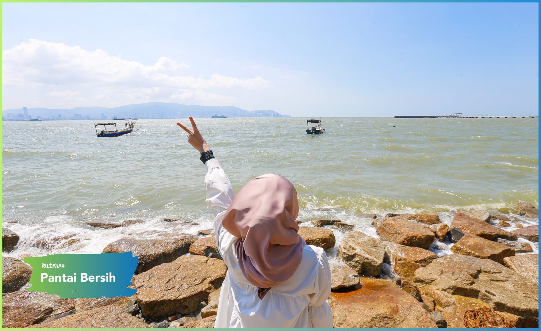 Aku sarankan kalau nak gambar OOTD yang lawa, anda boleh pilih kawasan berpasir dan kawasan berbatu yang berlatar belakangkan keindahan pantai serta dihiasi bangunan ikonik Pulau Pinang, memang cantik gambar anda nanti!
