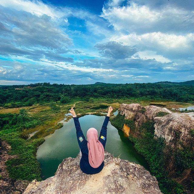 Bila sampai di atas korang akan dapat lihat 'tasik' atau 'kolam' yang berwarna biru, memang sangat cun untuk bergambar. Lokasi ini pada asalnya merupakan bekas lombong timah satu ketika dahulu dan peninggalan lombong tersebut telah mencipta tasik buatan ni. Lagi cantik kalau korang bawa drone untuk ambil gambar dari atas membuatkan lokasi ini nampak sangat eksotik.