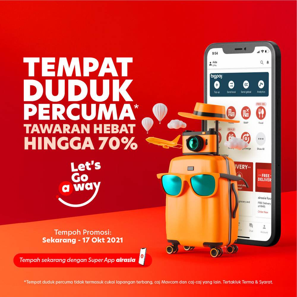 Penerbangan ini sedia ditempah di AirAsia Super App dengan menekan ikon ‘Flights’ mulai sekarang hingga 17 Oktober 2021, bagi tempoh perjalanan dari 1 November 2021 hingga 30 April 2022.