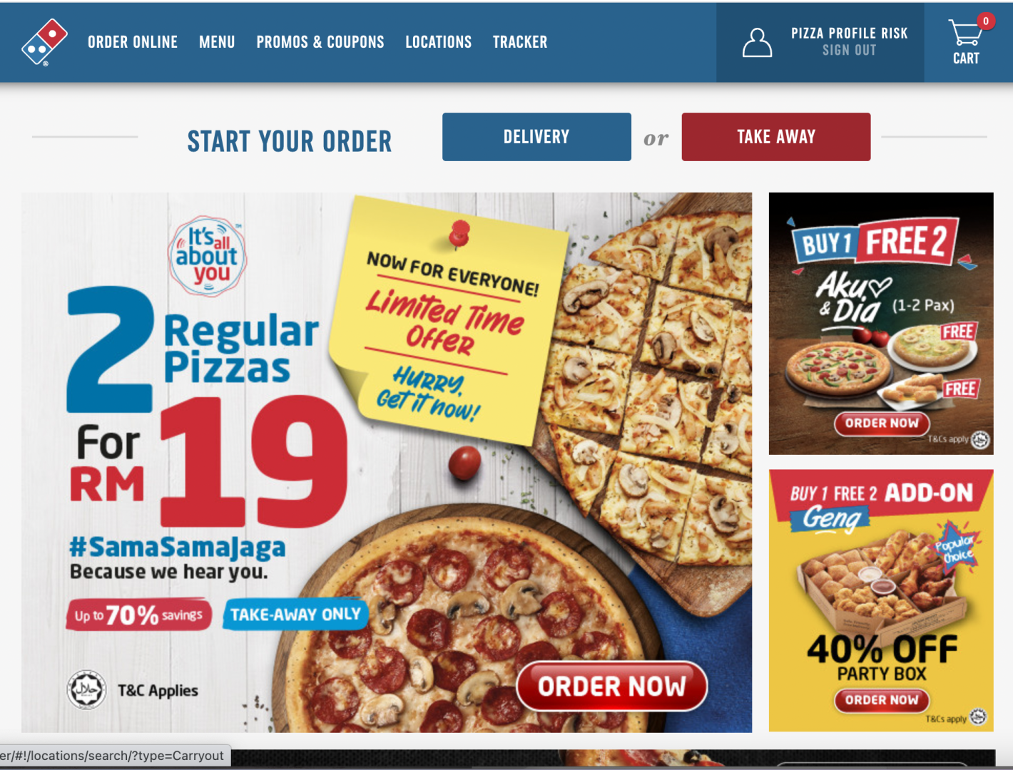1. Layari www.dominos.com.my dan tekan butang Take Away