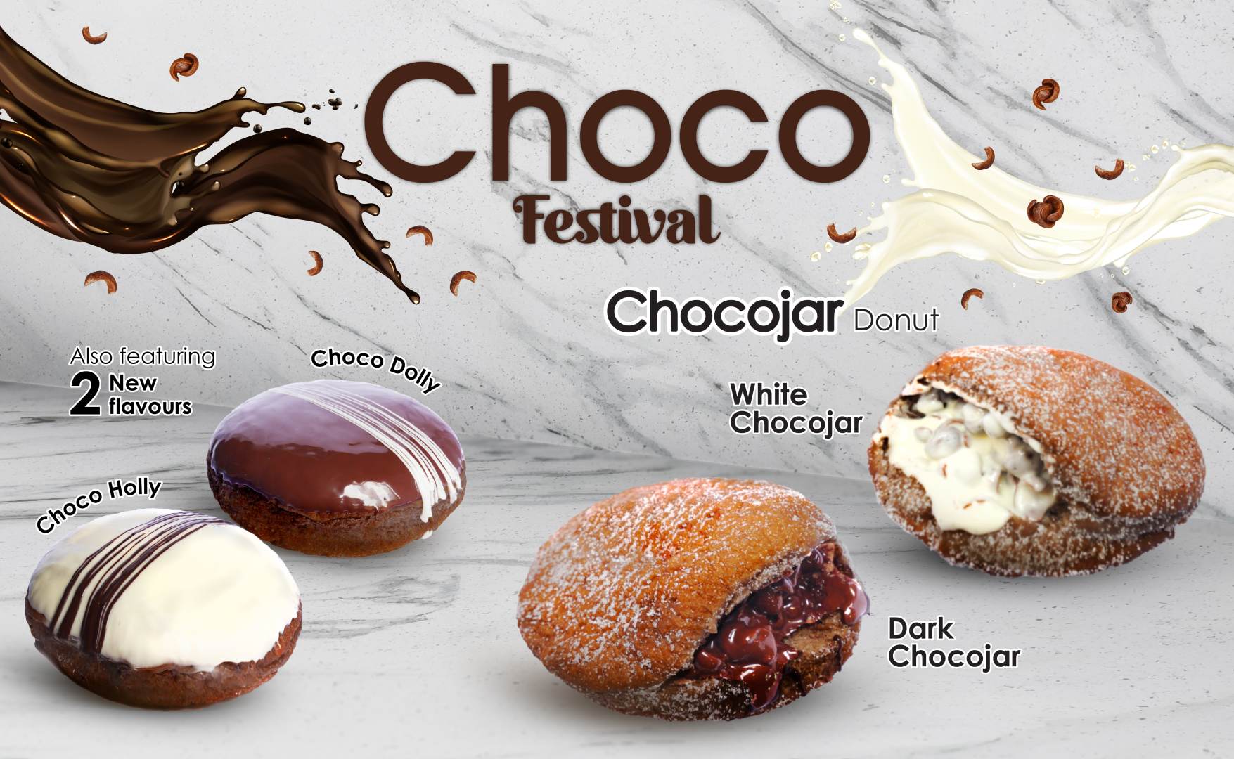 Sempena Choco Festival Donuts, Big Apple Donuts telah menghasilkan dua menu istimewa yang berinspirasikan choco jar! Menu yang pertama adalah ChocoJar Donuts, terdapat dua donut premium iaitu Dark ChocoJar dan White Chocojar yang berintikan coklat dan juga coklat putih! Yang lebih menarik inti kedua-dua donut ini disempurnakan lagi dengan chocojar yang sangat rangup! Doh yang empuk, rasa manis coklat dan rangup coco memang umph la!