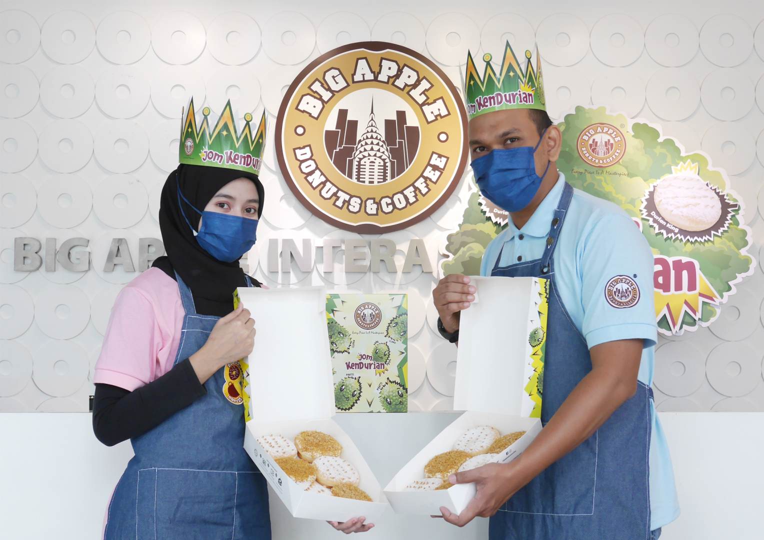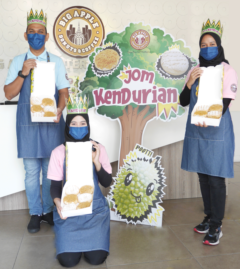 Kalau korang nak tahu, Big Apple Donuts & Coffee, syarikat anak Malaysia yang terkenal dengan pembikinan donat premium kini memperkenalkan resipi baharu kepada pencuci mulut mereka yang menggiurkan, kena sangat dengan tekak orang kita iaitu Durian King & Durian Queen!