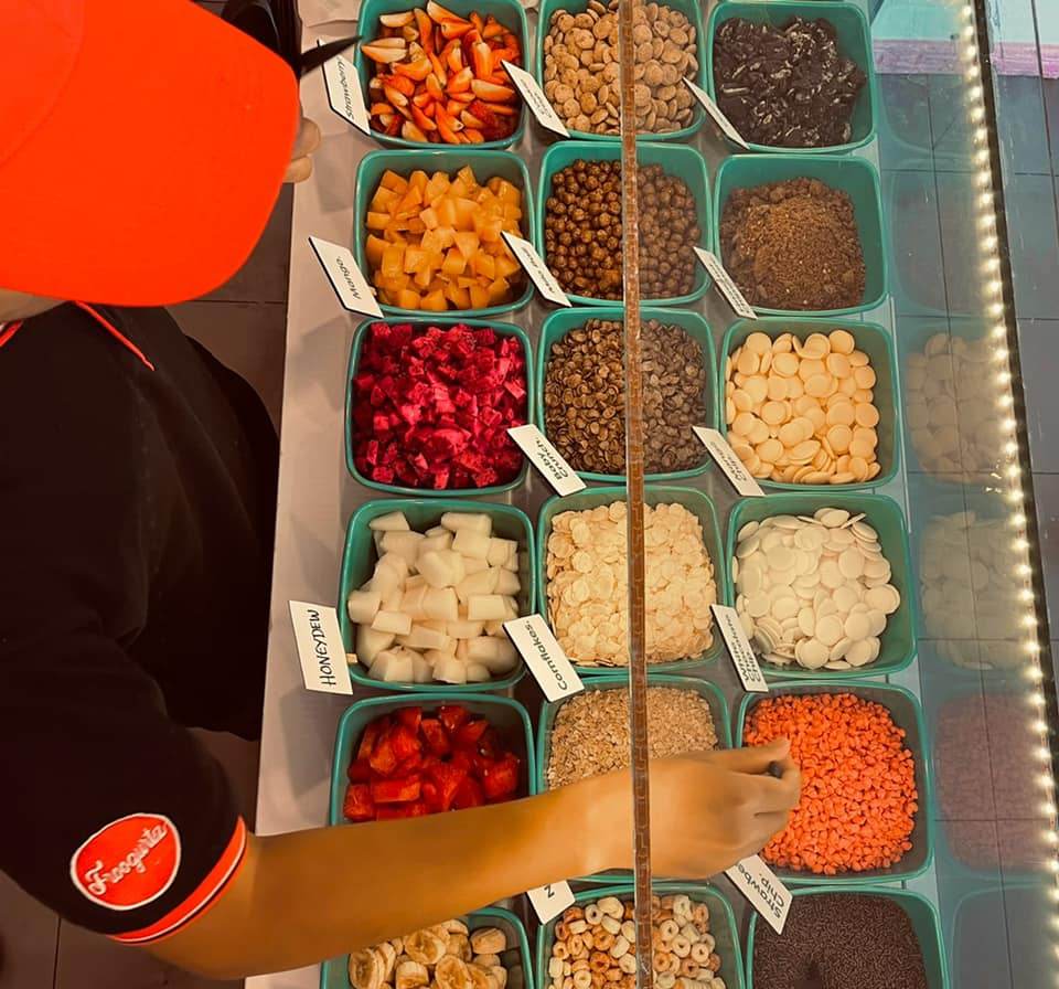 Malah pelanggan turut berpeluang menikmatinya bersama 40 jenis topping atau hiasan pilihan menarik, terdiri daripada pelbagai buah-buahan segar, bijirin, biskut serta sos manisan seperti coklat atau madu yang 'menghiasi' lingkaran yogurt beku itu.