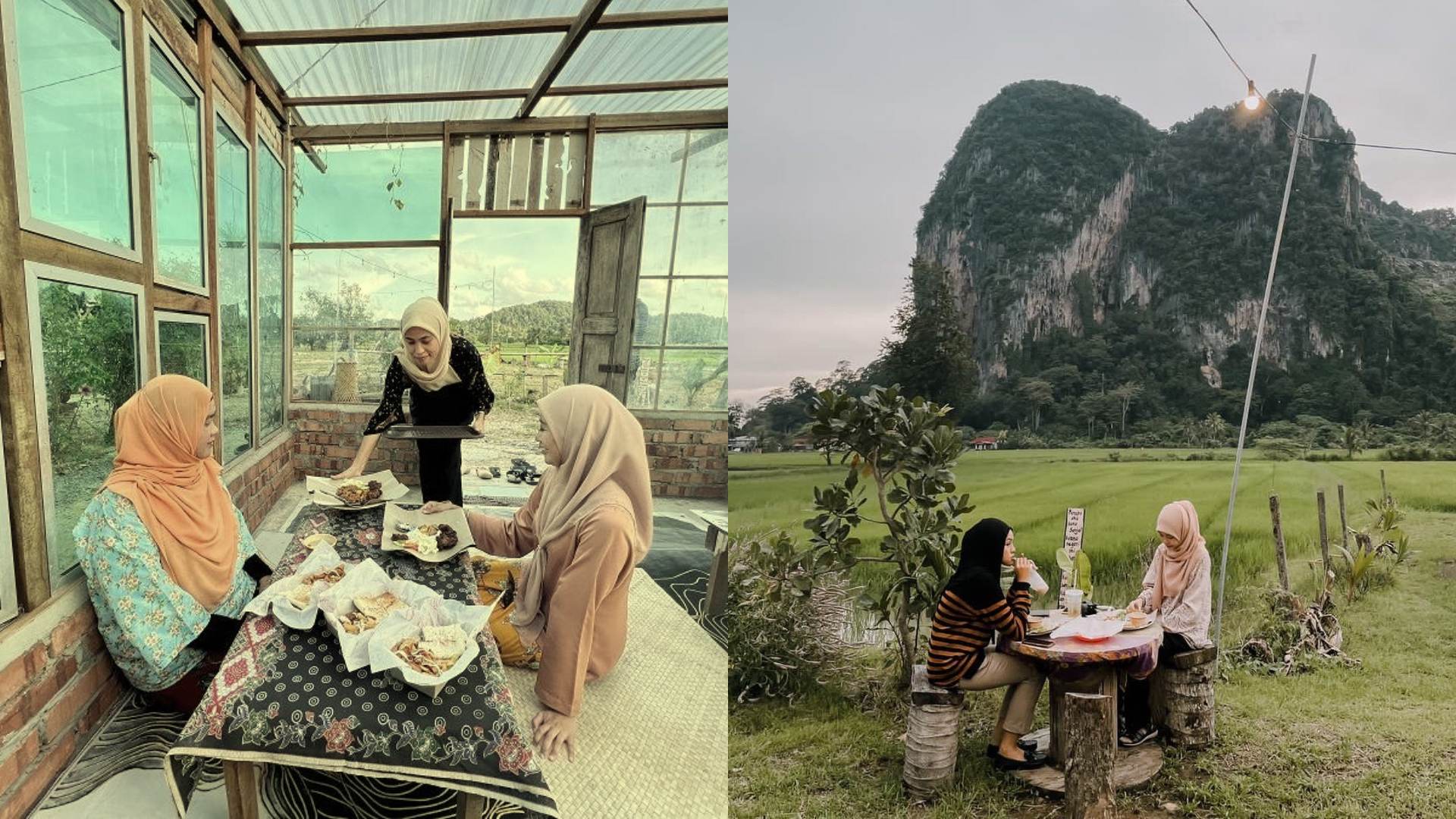 Sambil merasai hidangan, pengunjung boleh menikmati keindahan alam sekitar dalam suasana kampung di ruang makan yang disediakan seperti bilik kaca. Menariknya, sambil makan dan membaca, korang boleh menikmati keindahan di kawasan sekeliling yang cukup lengkap dengan pakej-lah orang kata!