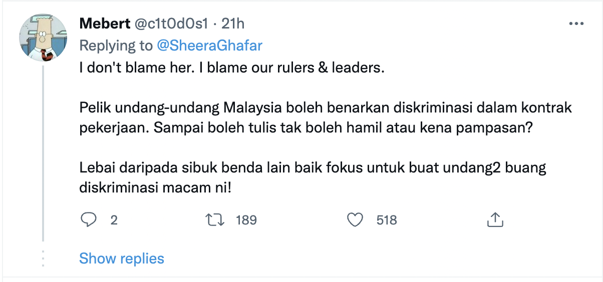 Teruk kakak ni kena kecam di group fb ibu hamil. Inilah hakikatnya - terpaksa gugurkan kandungan kerana kerja. Jadi, siapa lagi nak cakap tak ada penindasan terhadap wanita? Tak jadi pada kau atau keluarga, tak bermakna hal macam ni tak ada! pic.twitter.com/V7QdG8twJb