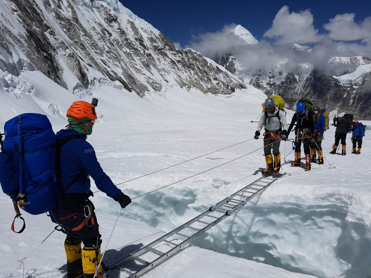 Pendaki gunung dan pihak berkuasa Nepal berkata, sungai pada kedudukan betul-betul di tengah-tengah kem asas telah berkembang dari tahun ke tahun.