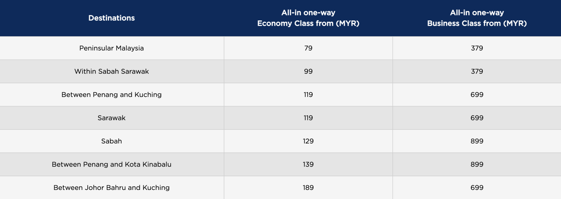 Check out senarai penuh harga penerbangan Malaysia Airlines: