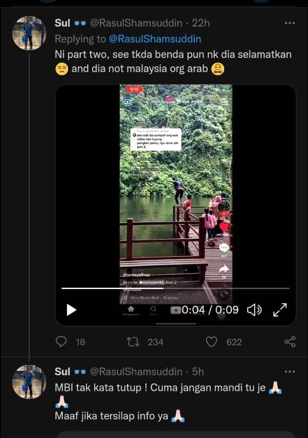 Ia susulan rakaman video kedua insiden tersebut yang dimuat naik di laman Twitter oleh pemilik akauan, sul@RasulShamsuddin pada petang semalam.