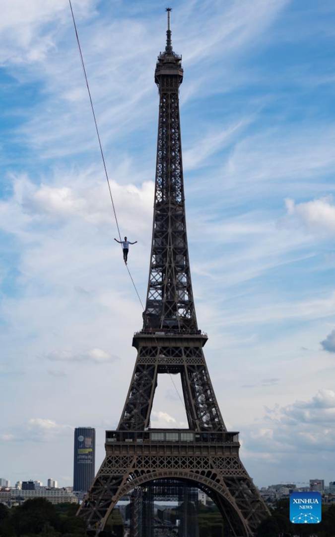 Semua berasa teruja dan tidak dinafikan agak 'ngeri' tatkala melihat aksi Nathan Paulin berjalan perlahan di atas dawai yang direntangkan sepanjang 600 meter dari Menara Eiffel hingga ke satu stesen di seberang Sungai Seine.