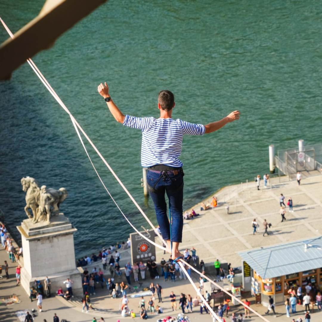Pada 2019, lelaki warga Perancis itu melakukan aksi yang sama tapi dari ketinggian 150 meter, dengan berjalan di atas dawai yang direntangkan sepanjang 510 meter antara dua pencakar langit di wilayah komersial La Defense, Paris.
