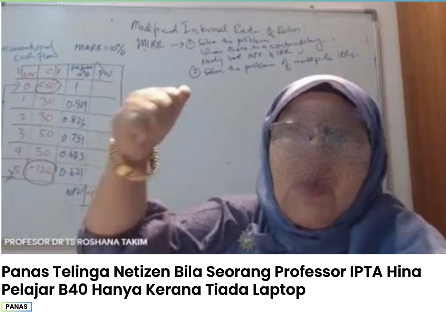 Panas Telinga Netizen Bila Seorang Professor IPTA Hina Pelajar B40 Hanya Kerana Tiada Laptop