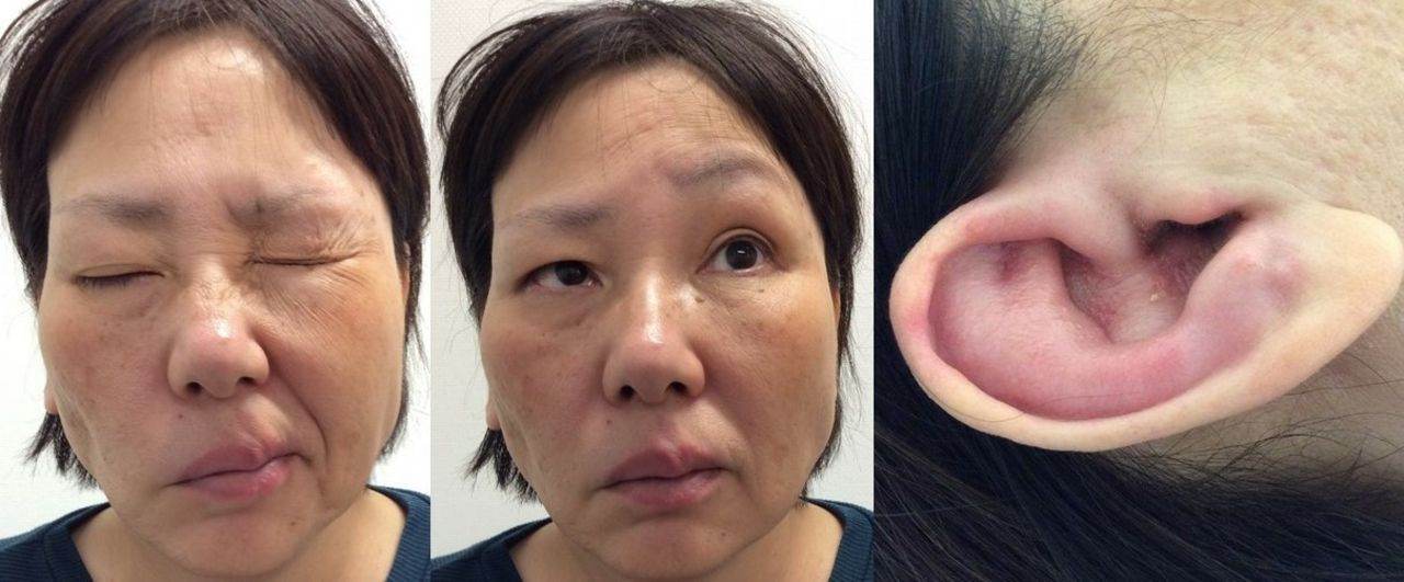 2. Lumpuh di bahagian muka yang dekat dengan telinga yang dijangkiti.