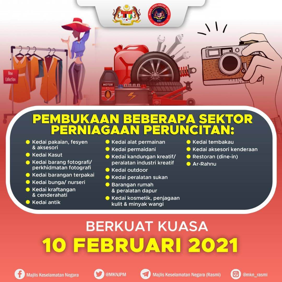 Bukan berita itu sahaja malah, Kerajaan turut bersetuju untuk membuka semula baki keseluruhan sektor perniagaan peruncitan bermula Rabu.