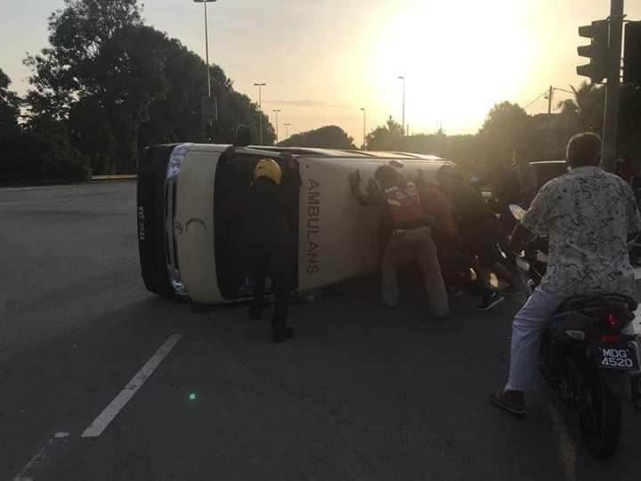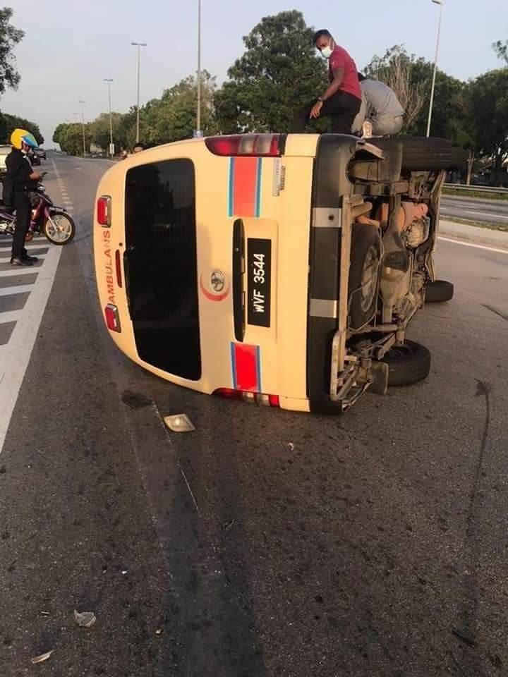 Myvi Buat Hal Lagi, Kali Ini Langgar Ambulans Sampai Terbalik!