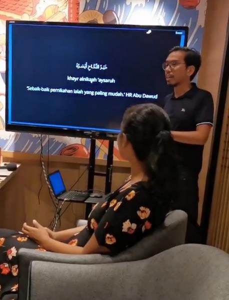 Di hadapan lelaki tersebut, kedua-dua bakal mentua bersama kekasihnya dilihat sedang mendengar pembentangan itu dengan teliti.
