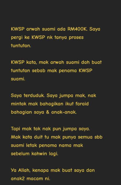 Ibu Mertua Bolot Semua RM400K Wang KWSP Tanpa Mengikut Hukum Faraid